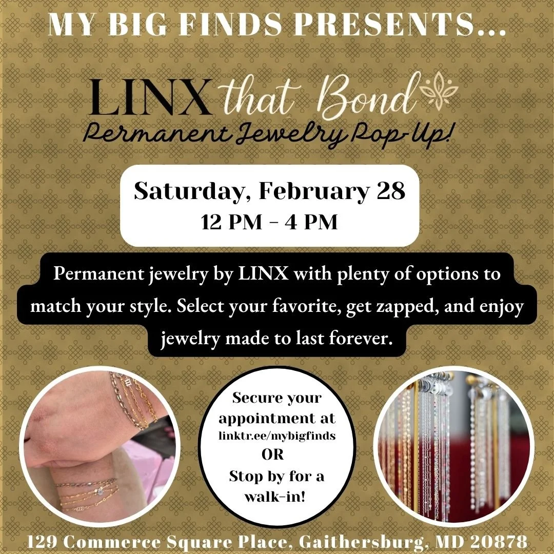 Permanent Jewelry is back by popular demand at My Big Finds! Join us to welcome our newest pop-up, LINX that Bond Permanent Jewelry! There will be plenty of options to match your style. Select you favorite, get zapped, and enjoy jewelry made to last forever! Book your spot here or walk-in! We can't wait to see you on Saturday, February 28th from 12-4 PM!